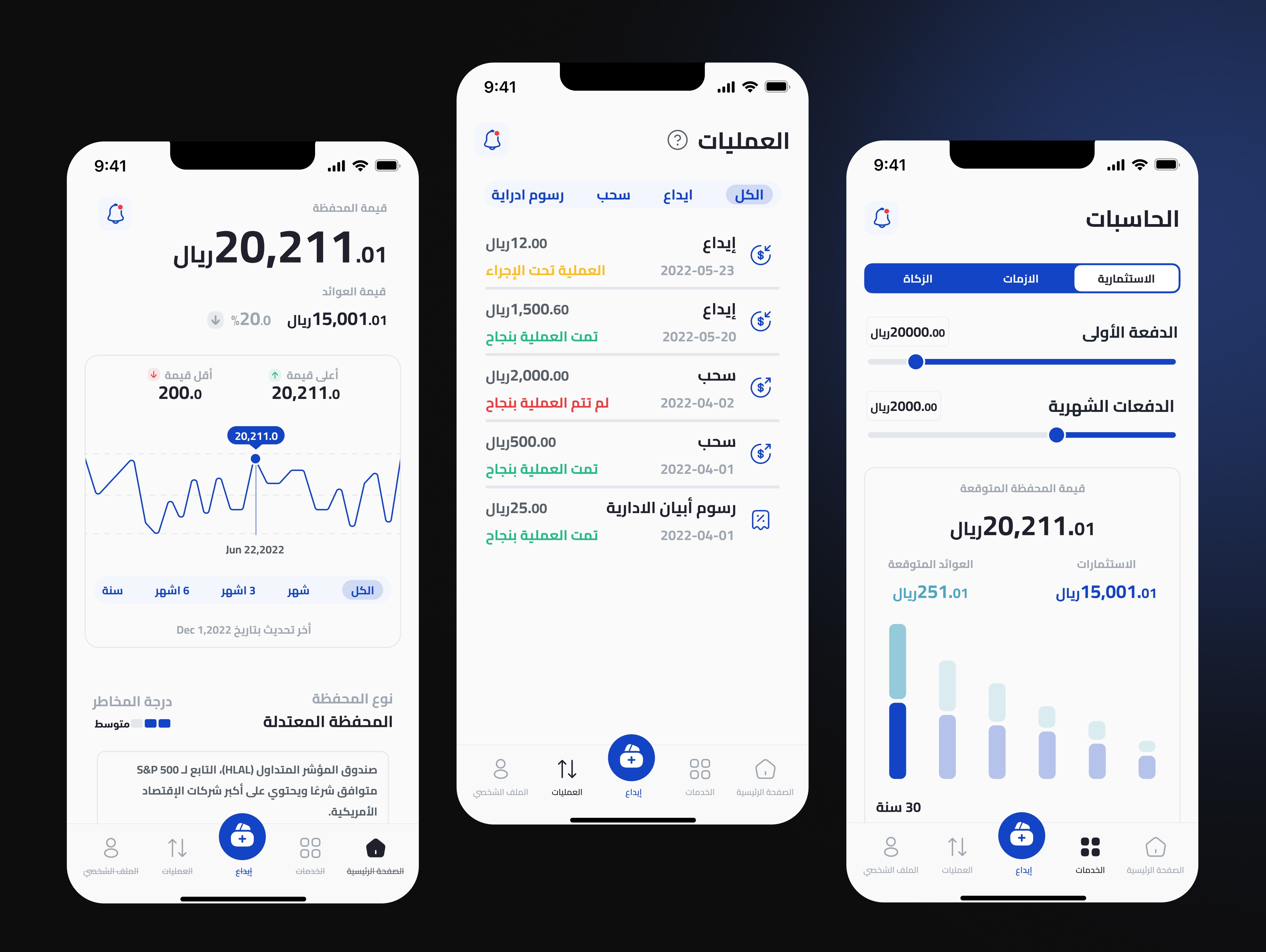Abyan Capital is an investment platform that provides automated, sharia-compliant, and diversified investment options. It allows users to open portfolios within minutes, offering access to local and global markets. The platform's long-term investment strategy includes portfolios in real estate, stocks, and Sukuk, tailored based on a user’s financial situation. Abyan is committed to Islamic finance principles, with an independent internal committee reviewing all products for compliance with sharia law. The app also offers easy deposit and withdrawal features.