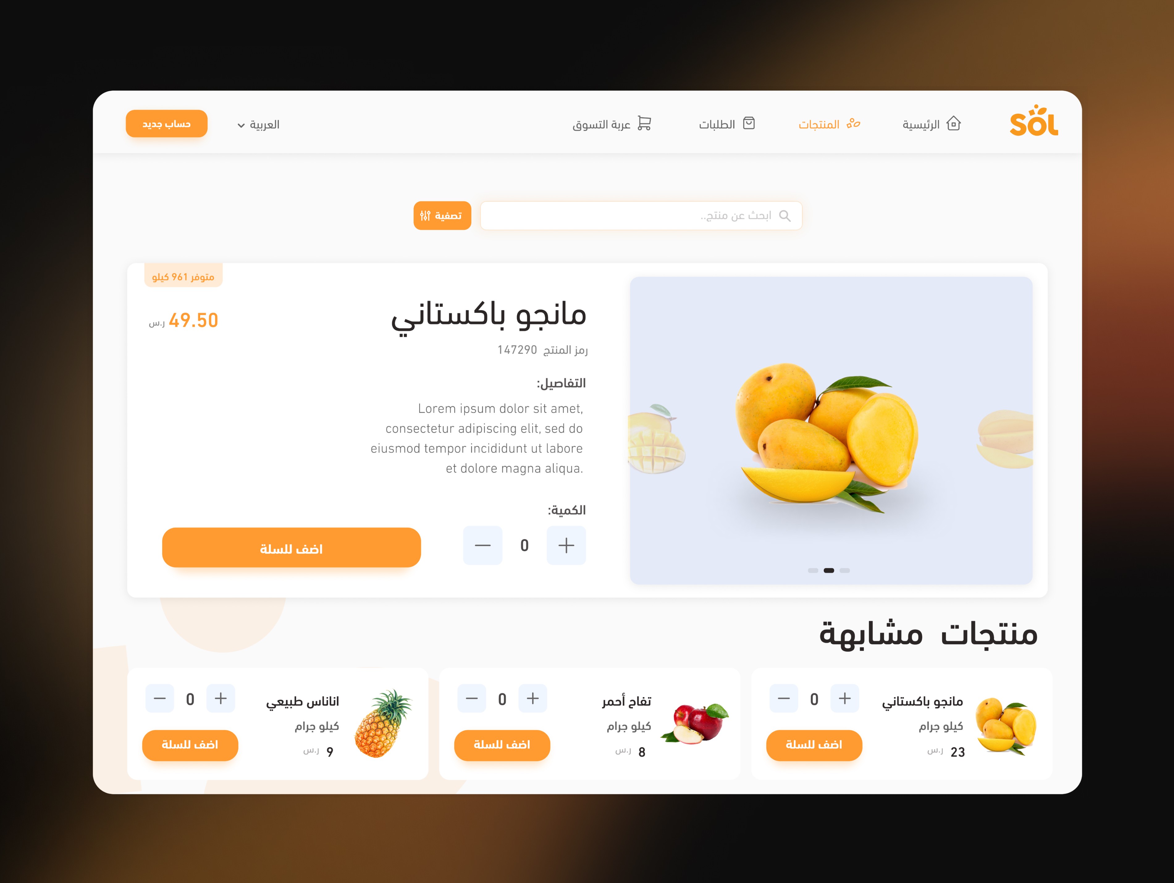 SOL is an online wholesale platform catering to restaurants' needs. It offers a wide variety of products, including meats, poultry, vegetables, fruits, dairy, grains, canned goods, cleaning supplies, beverages, and more. SOL simplifies bulk purchasing for businesses, providing competitive pricing and easy access to essential goods. Users can manage orders through a dashboard and benefit from delivery services across Saudi Arabia.